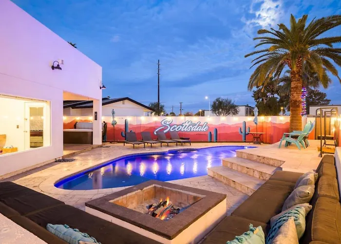 La casa vacanze nel distretto Camelback East si trova a 10 minuti in auto dallo Zoo di Phoenix e a 25 minuti a piedi da luoghi di shopping come lo Scottsdale Fashion Square. Se hai voglia di visitare i dintorni, visita lo Scottsdale Stadium, a 2,1 km da questa villa. La Villa Ultimate House W Pool offre un facile accesso a meraviglie naturali come il Giardino Botanico del Deserto (3 km) e il Camelback Mountain (3,1 km).